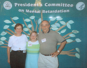 Also during high school, I had an amazing teacher who helped facilitate the vision my family and I had of being fully included into all aspects of school and community life. My "inclusion facilitator" helped me explore many jobs in my community to find out what kind of work I liked to do. I tried working at a preschool, a print shop, a realtor's office, the art museum and a number of other sites. The job I loved best was as a receptionist at the YMCA. Upon my graduation from high school, the "Y" offered me a paid job, where I still work today after almost four years. The job is so "me" because I love to be around people. I give tours and greet and assist the members. I love it!