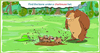 What do you give the talking dog that has everything? A radio show! In this game, kids listen in to Radio Martha and find pictures that help illustrate her stories. With themes like Halloween and a traffic jam caused by hot dogs, there's a whole range of new words to play with. Listen for words like spooky, drizzle, and soothing.