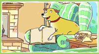 It's time to pal around with playful pups from the show! Kids choose a dog to "adopt" and then play with them, feed them, and watch their tricks. Martha hosts, offering insight into each pup's personality. Kids choose from Skits, Francois, Pops and Courageous Collie Carlo. When playtime is over, the adopted pal will live at the top of the screen, keeping kids company as they play games and watch videos. Listen for words like personality, expert, outfit and ingest.