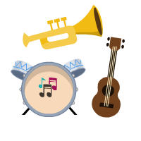 Overview: Get movin’ and groovin’ by making musical instruments! In the video “Daring Young Man,” Noah, Coco, and Pequeño venture to the circus. When Noah goes to buy Coco popcorn, he gets lost and ends up part of the show! In the course of the video and related games viewers have the opportunity to learn the Spanish words for musical instruments and numbers. In this activity, your child will practice Spanish vocabulary through a game and a craft activity. |